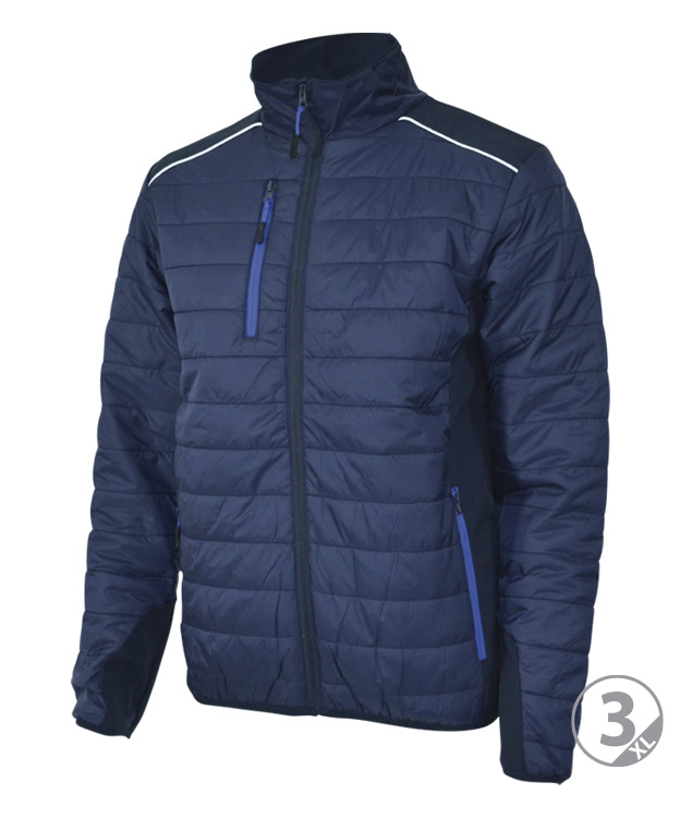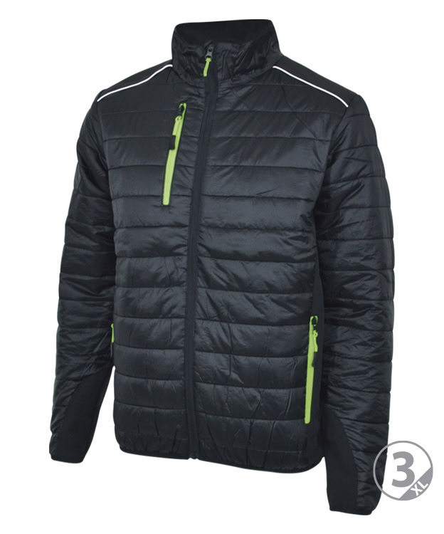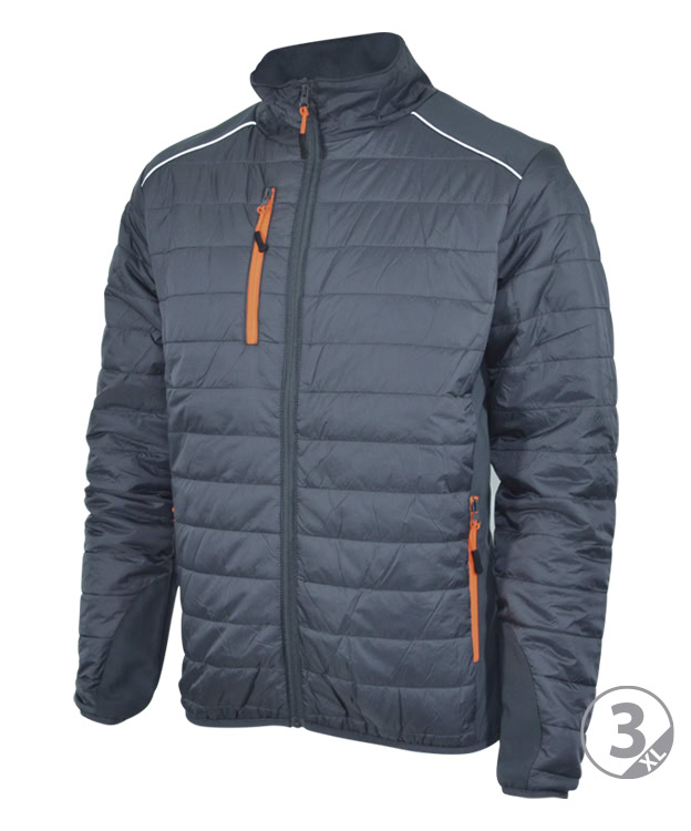 Cazadora acolchada ligera de dos materiales. Exterior: cuerpo 100% nylon micro RipStop y tejido softshell. Acolchado interior 100% poliéster de 100 gr. e interior 100% poliéster. Incluye un bolsillo en pecho y dos bolsillos laterales con cremallera a contraste. Interior del cuello con tejido micropolar. Cazadora ligera que ofrece una calidez excelente gracias a su acolchado.