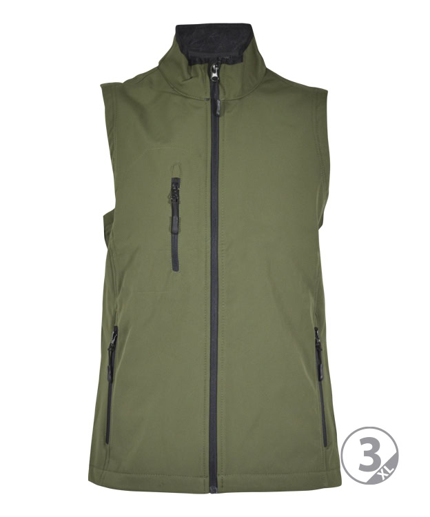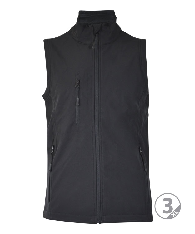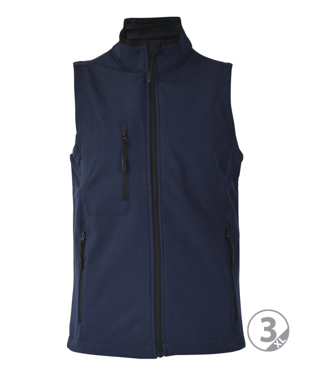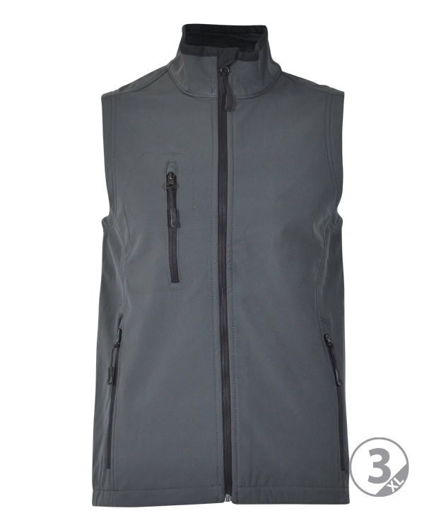 Chaleco softshell 3 capas. 95% poliéster 5% elastano, 300 gr. Membrana transpirable resistente al agua (5000 mm). Cuello micropolar forro interior. 2 Bolsillos laterales y 1 bolsillo fontal.