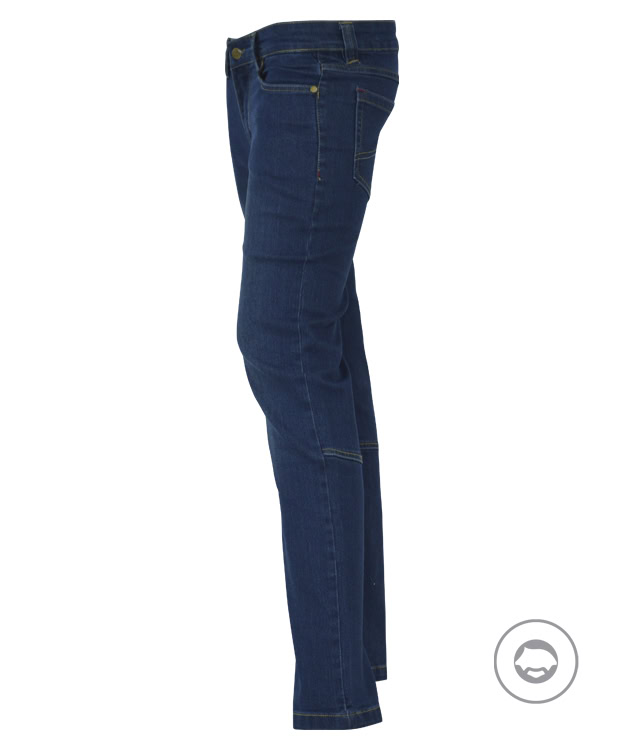 Pantalón largo vaquero mujer. 70% algodón 28% poliéster 2% elastano, 340 gr. Cierre con botón y cremallera metálica. Triple costura. Trabillas en la cintura. Corte slim fit. Efecto lavado a la piedra. Bolsillos con remaches metálicos en los extremos de la apertura. 2 bolsillos frontales, uno de ellos con bolsillo porta monedas. 2 bolsillos traseros.