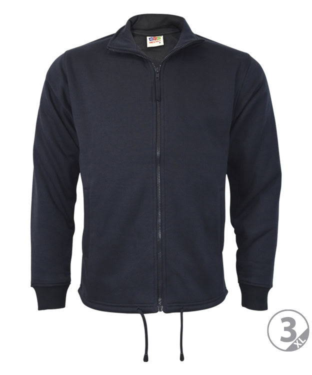 Sudadera con cremallera entera. 65% poliéster 35% algodón, 280 gr, felpa lisa perchada. Bolsillos laterales. Canalé en puños. Bajos con cordón.